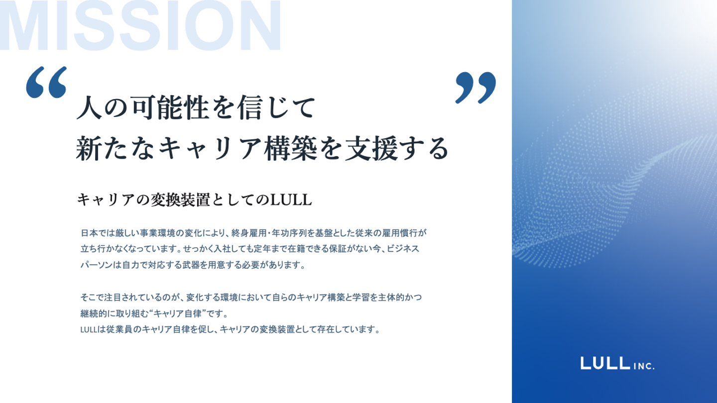 『人の可能性を信じて新たなキャリア構築を支援する』がLULLのミッションです。