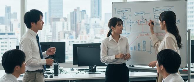 若手メンバーはマネジャーと一緒にプロジェクトに参画し、OJTで経験を積んでいただきます。