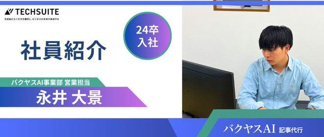 TechSuite株式会社は2022年5月より事業を開始したスタートアップ企業です。 弊社では「生成AIとヒトの力を融合し、ビジネスの未来を創造する」をミッションとして掲げ、生成AIに関連するサービスを提供しております。 ■事業内容 ◯バクヤスAI 記事代行 弊社独自のAIシステムの活用でSEO記事を生成・ご納品するサービス ◯AIスカウトくん 生成AIを活用し、候補者選定からカスタムスカウト送付まで丸投げ ◯AI/DXコンサルティング DX推進や生成AIの活用支援をサービスとして提供