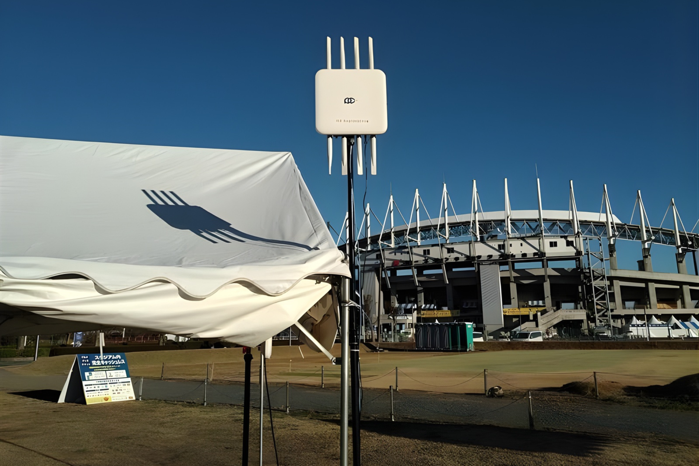 そこで課題となったのが、携帯キャリアの通信キャパシティです。ホームスタジアムである「ケーズデンキスタジアム水戸」は、田園に囲まれた立地のため、周辺の携帯キャリアの基地局キャパシティには限りがありました。そのため、試合当日は多くの人が集中したことで、通信がつながりにくい状況が発生。サポーターの利便性向上だけでなく、クラブ運営側にとっても、通信の混雑解決は急務でした。