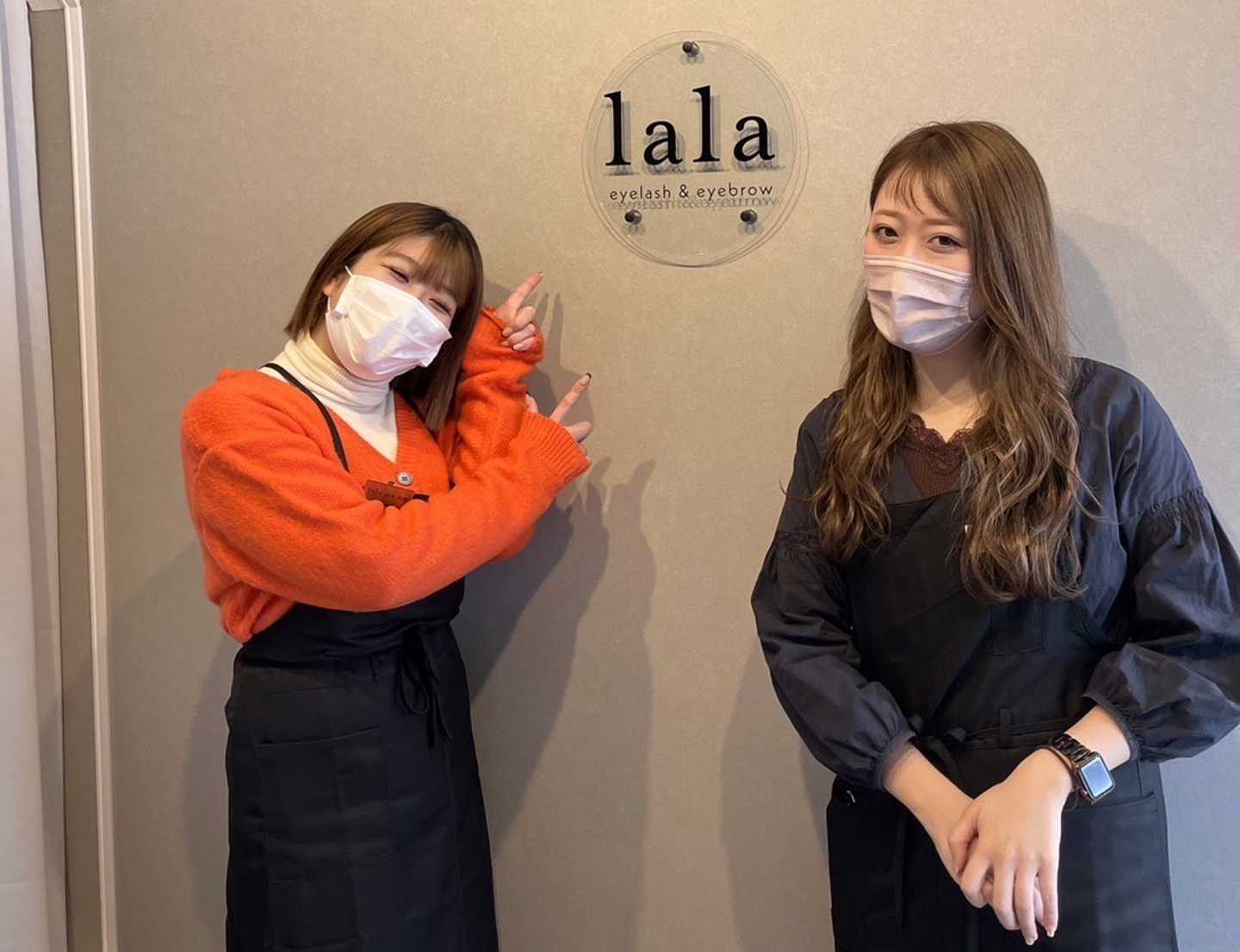 今何してるんやろ笑。2021年4月にインターンから社員になりました。以前インターンをしていた会社でデザインを勉強していたことから広告のデザインをしたり、美容系店舗のロゴ作成をしたりしています。クライアント様のマーケティングを包括的に考えることも多いです。1月にニナレルでもマツエクの店舗を出したのでそのWebマーケティングや運営にも関わっています。(▼お店のロゴとアイリストの2人です▼)