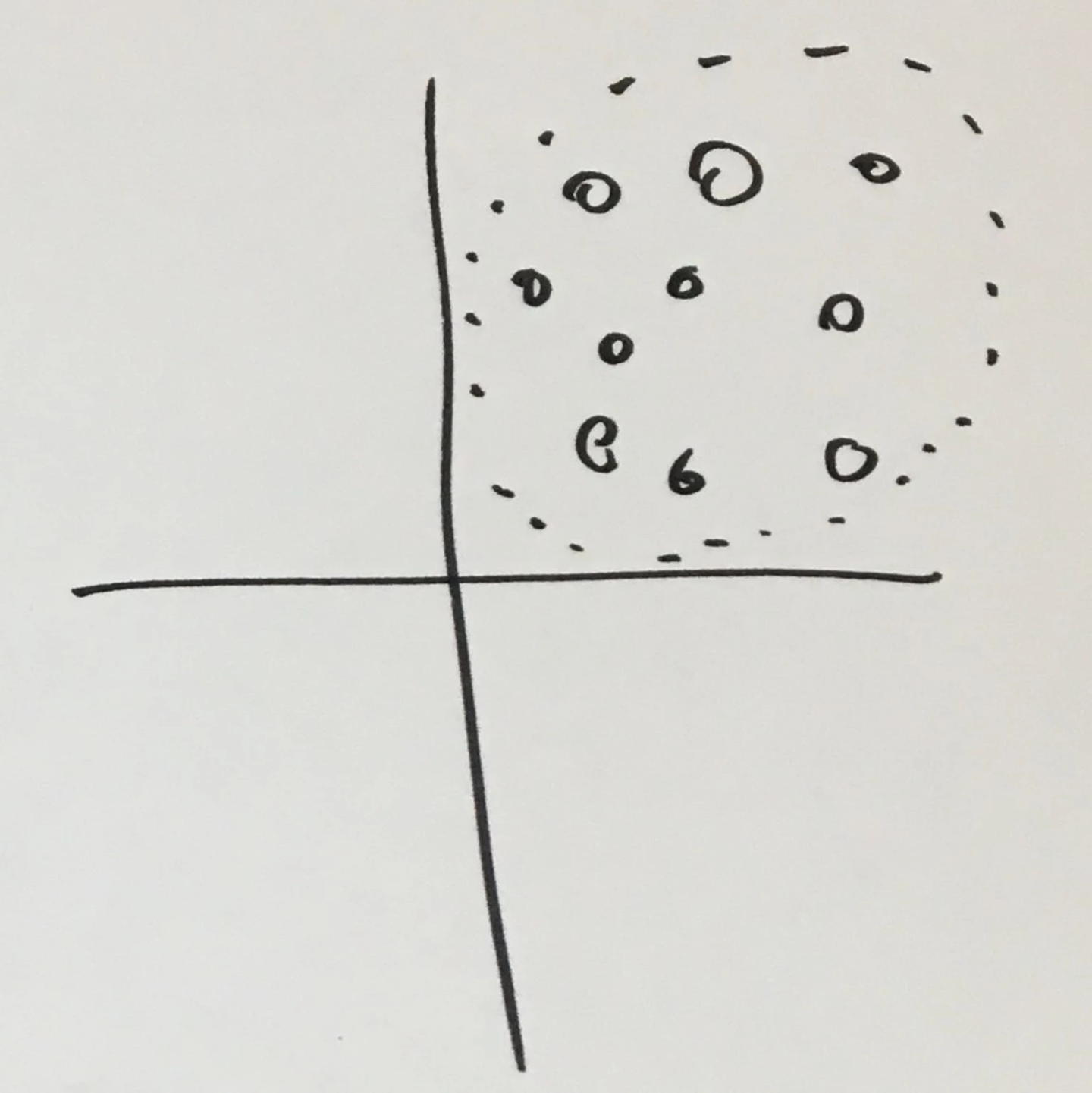 この図のようにメンバーの価値観や判断基準(実線○で表現)が散らばっている場合、それぞれに応じたルールや施策(破線○で表現)をつくる必要があります。