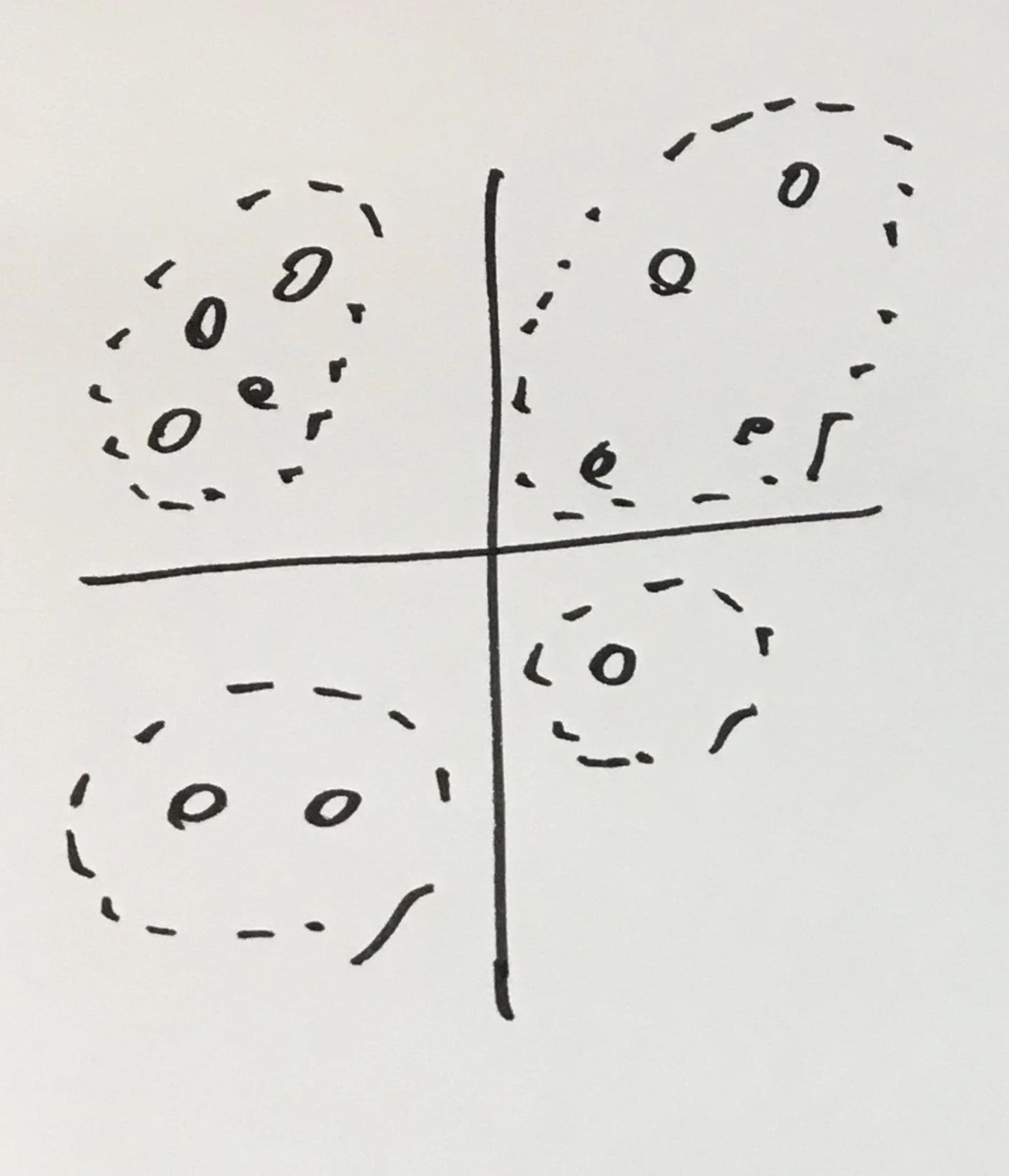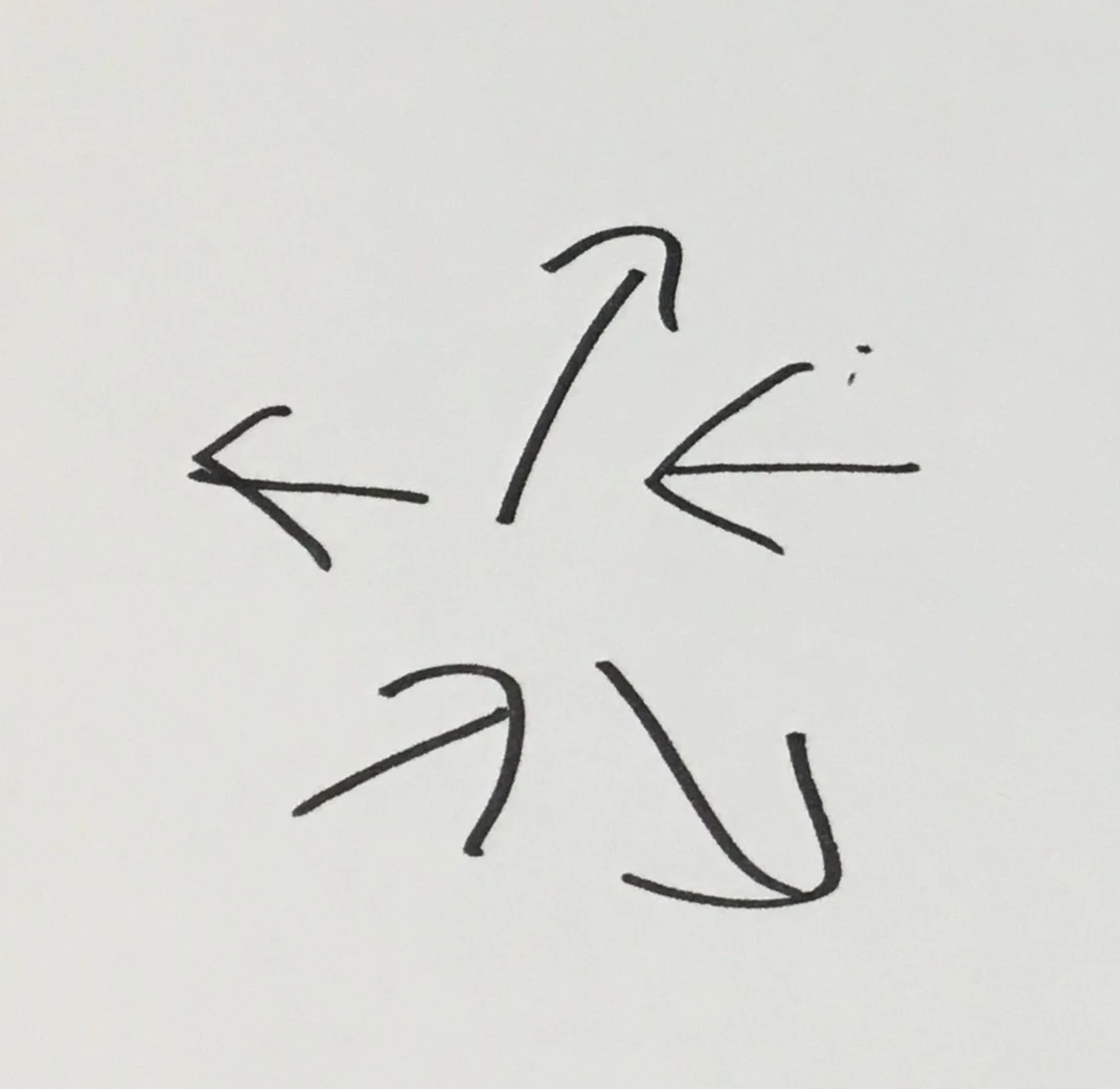 こんな感じ。エネルギー効率悪そう。内発的な行きたい方向がバラバラで、かつそれぞれが早く遠くに走れる力を持っている人の場合、ほぼほぼ組織崩壊します。