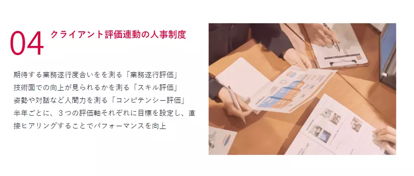 2つ目はクライアント評価と社内評価が連動する評価ロジックですね。