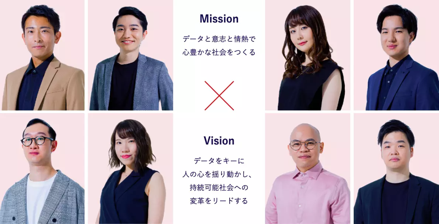 ・Vision:「データをキーに人の心を揺り動かし、持続可能社会への変革をリードする」