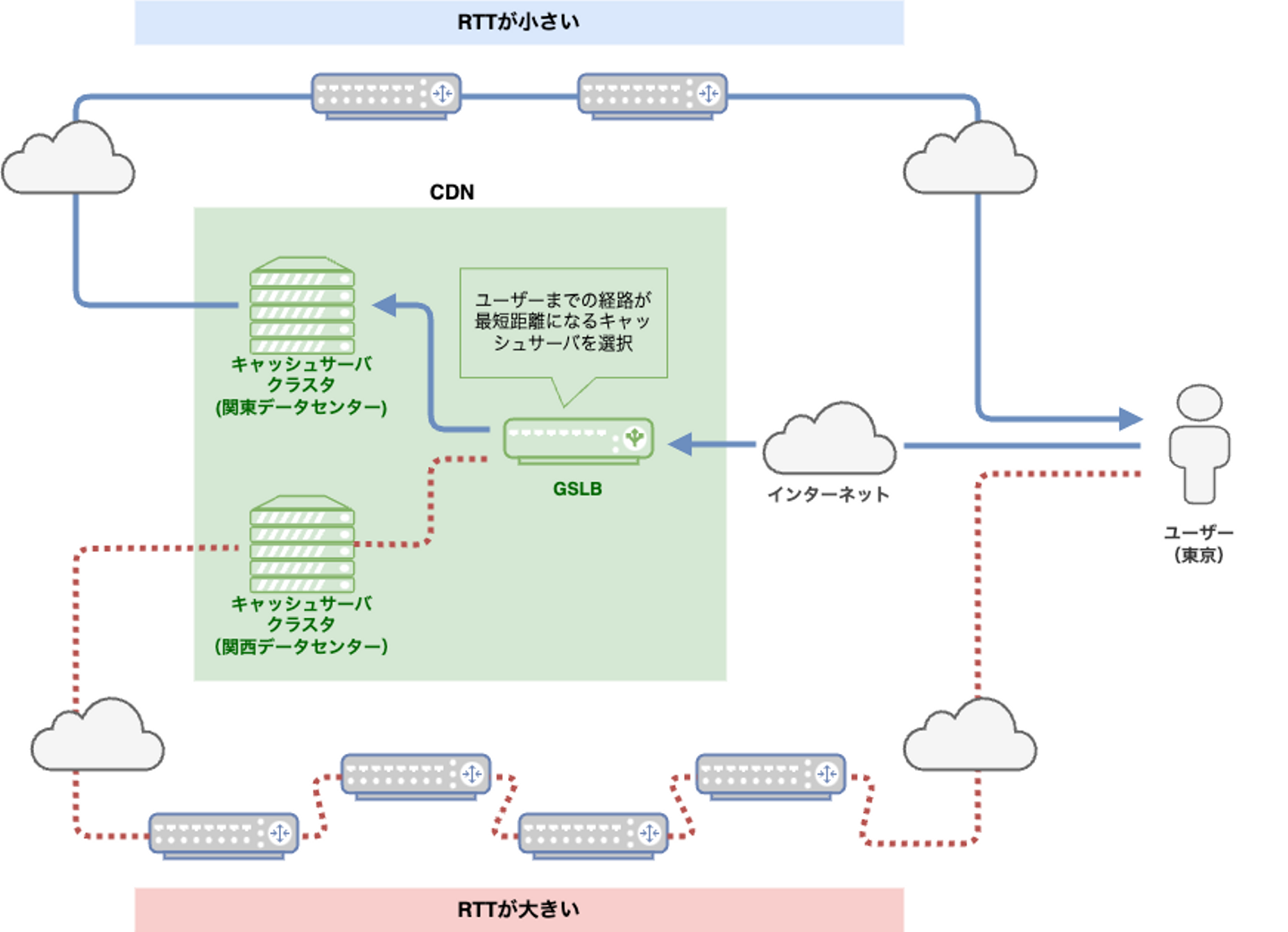 - 「ユーザーとキャッシュサーバ間の距離(RTT)による制御」