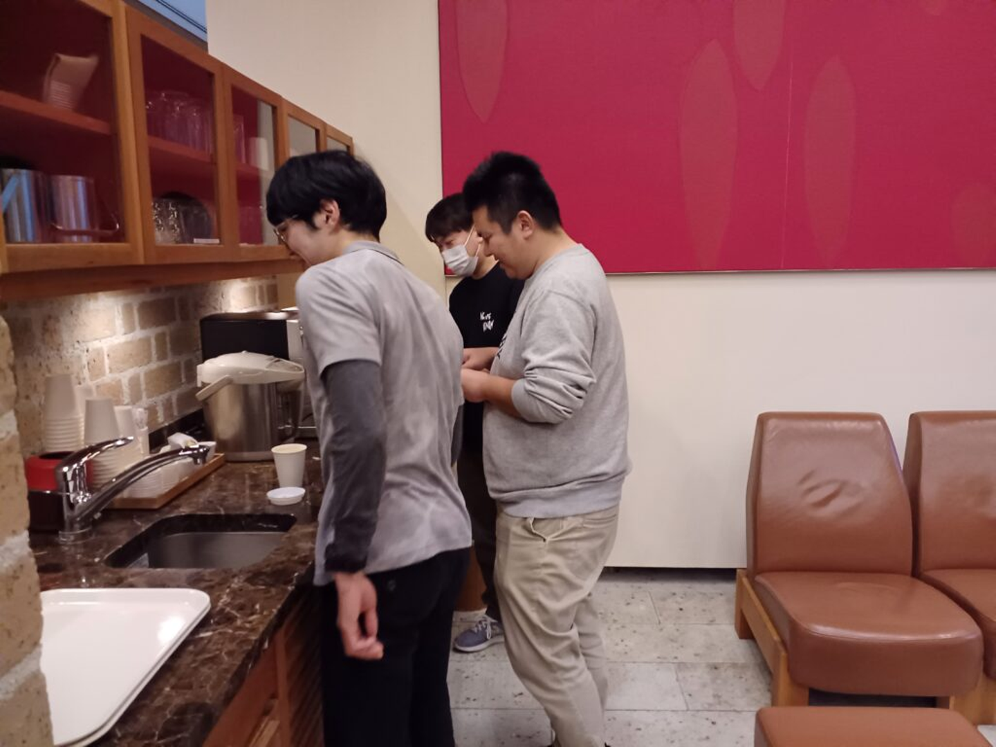 休憩は、お茶を入れながらわきあいあいと