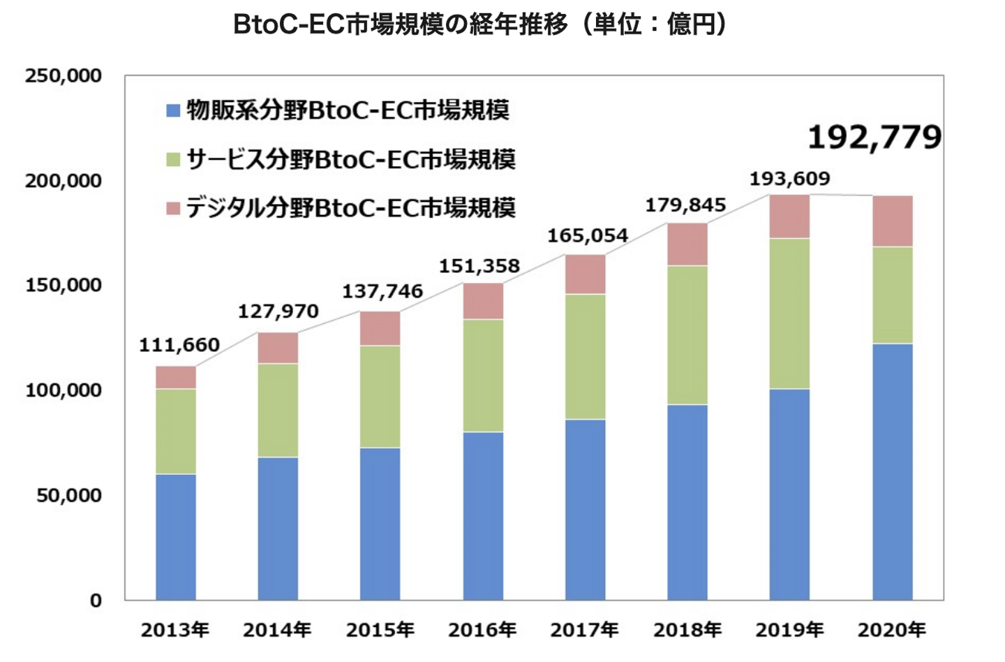 出典:電子商取引に関する市場調査の結果を取りまとめました / 経済産業省 2021年