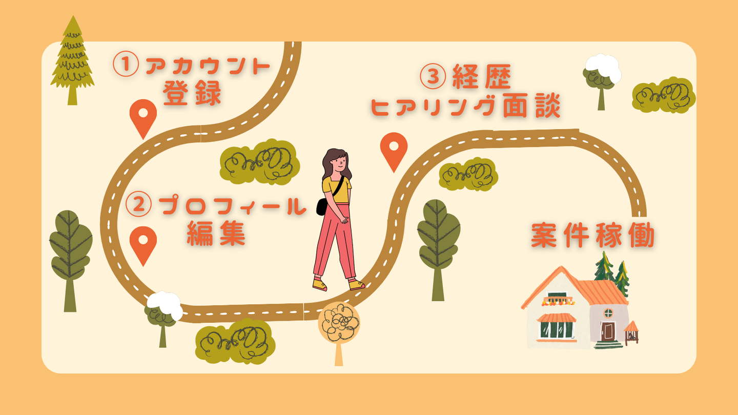 無事アカウント登録を行い、プロフィール編集を行い、ヒアリング面談を行い、最終的な案件稼働に至るために、TMでは以下の業務を行っています。