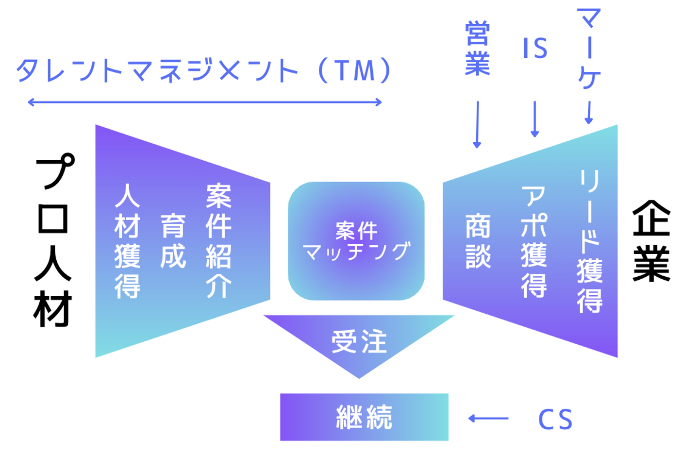 TMが紹介したプロを営業が確認し、企業に提案。企業が興味を持ってくれたら受注、というのが流れになります。