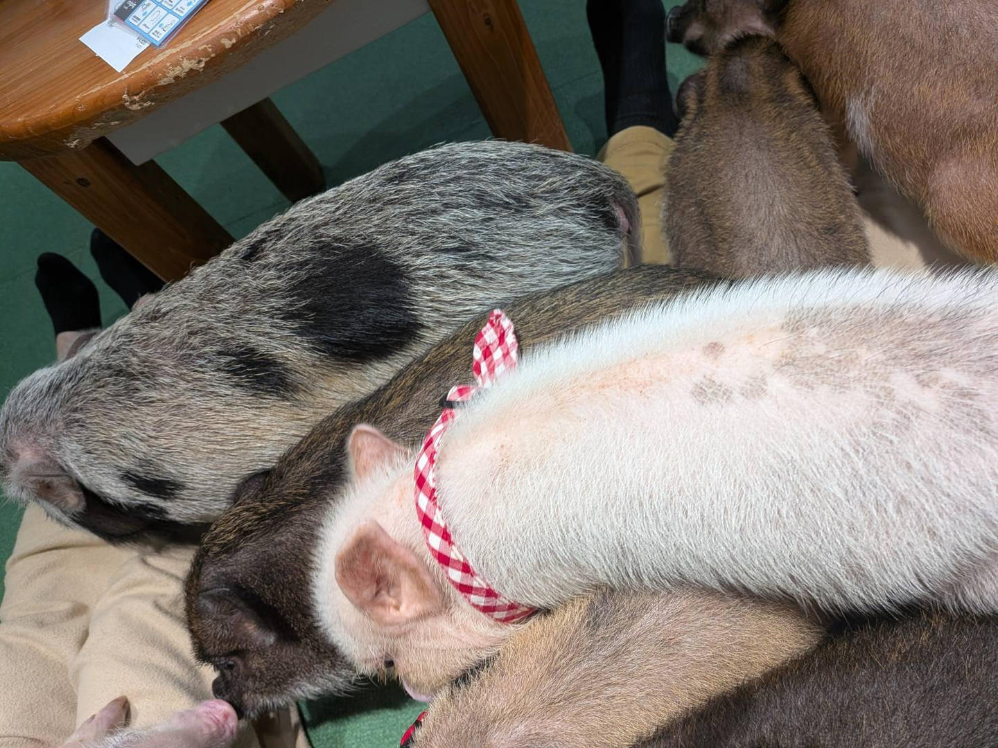 品種としはマイクロブタというらしく、よく知っている豚さんは100kg~300kgという大きな体に対して、その大きさは10kg~20kgとなっており、成体でも中型犬と同じぐらいの可愛らしいサイズです。 私が色んな動物カフェを巡ってきた中で、今回これほどハマっているのには理由がありまして・・・。 この「mipig cafe」さん、おやつサービスは無いのですが豚さん自ら寄って来てくれるのです! とにかく人間が好きらしく、我先にと足の上に乗って来てくれるのはとても癒される空間です。