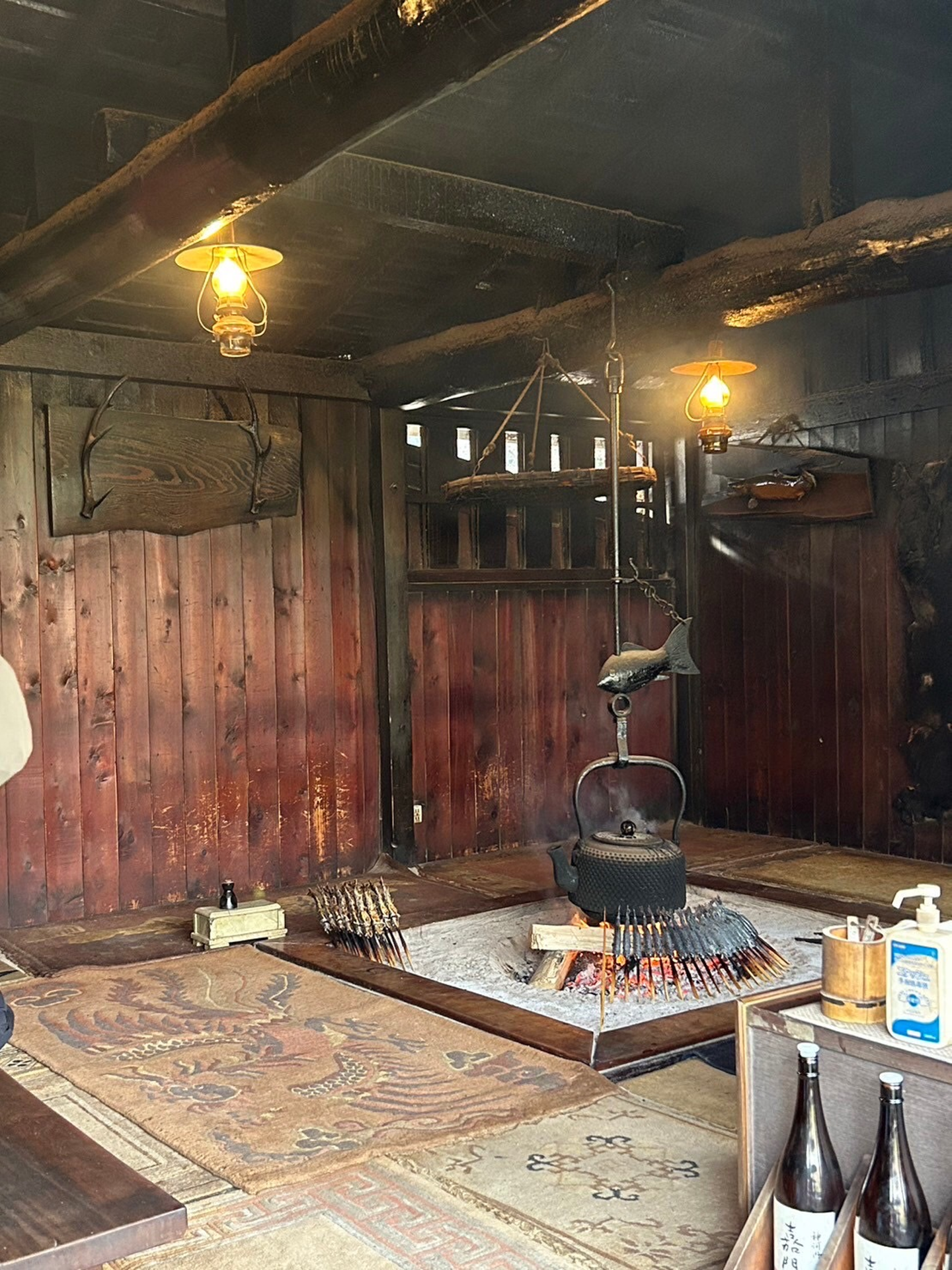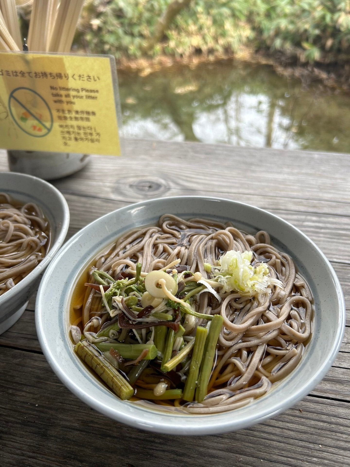 昼食は森の中にある開放的なレストランでいただきました。 メニューは山菜そばと岩魚! 寒い中で食べる温かいメニューで、めっちゃめっちゃ沁みます。。。 岩魚は頭、骨、尻尾まで全て食べられるようになっており、美味しさのあまり思わず2匹ペロリ! 思い出すだけでもお腹がすいてきます。。