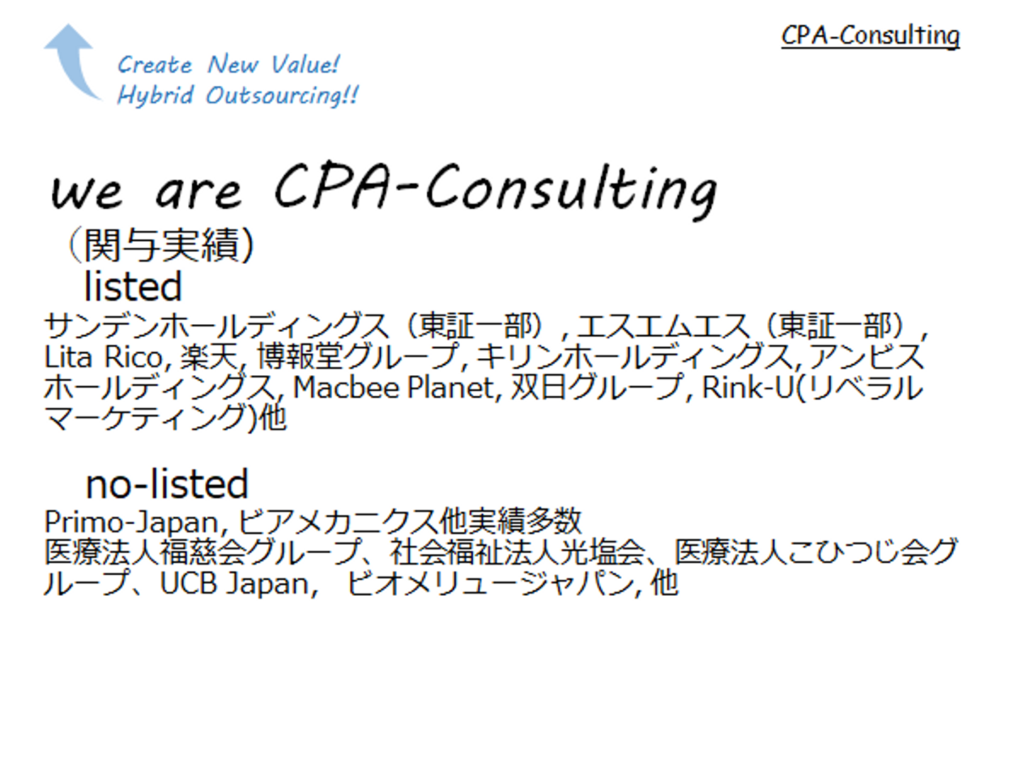 ・パーマネントメンバーではコブで生じる移行により生じるマスタ(大量)登録・給与計算のテスト実施、平行実施について、貴社責任者の管理の下で主として作業面等を弊方で代行することで、ERP導入をサポートいたします