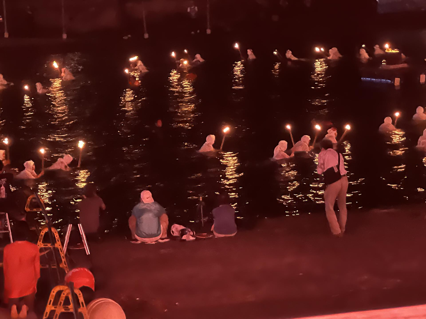 当日は一般公募も順調で、想定した海女さんの数も集まり、100名を超える壮観な「大夜泳」が実施されました。当社のCPA-Consultingのメンバーも本職の海女さんに交じって、海やたいまつで活躍しました。