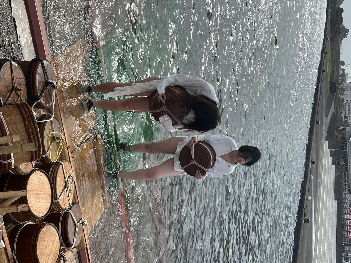 Workation Center Shirahamaに併せて、当地へ生活基盤を移した南房総市市民のメンバーを中心に、ボランティア「海女さん」活動を実施しました。樽にのって、夜の海で泳げるように練習します。