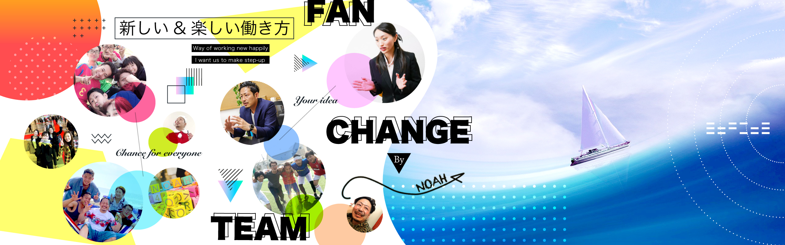 地方公務員から社長を目指す。派遣スタッフから月収70万円を超えるフリーランスへ。当社には、個性あふれるメンバーが揃っています。誰もが“今の働き”に疑問を持ち、「1回きりの人生を今のままで終わらせて良いのだろうか」と考え、無限の選択肢があるNOAHに入社しています。営業代行を主業務にしていながら、メンバーの約8割が営業未経験者。普通に学校を卒業して、普通に定年まで勤める…。ということに疑問を感じて、敢えていばらの道を選択しています。ただ、誰一人と悲壮感を持ったスタッフはいません。