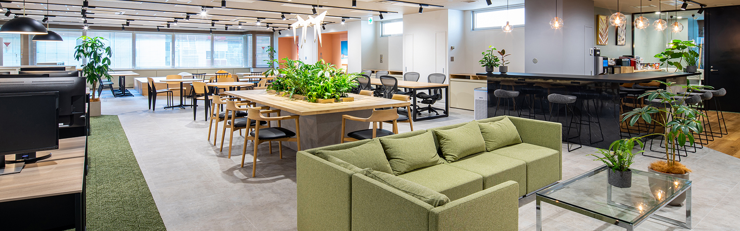 3月からの新オフィスでは各固定席は設けずにフリーアドレスを導入し、どこでも自由に好きな席で働くスタイルとなります。