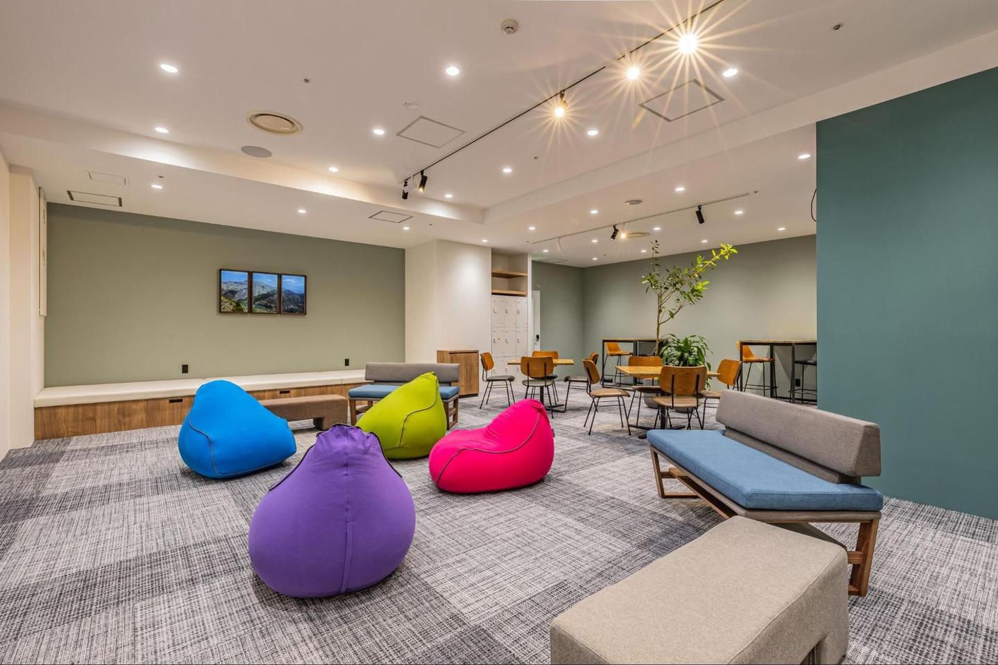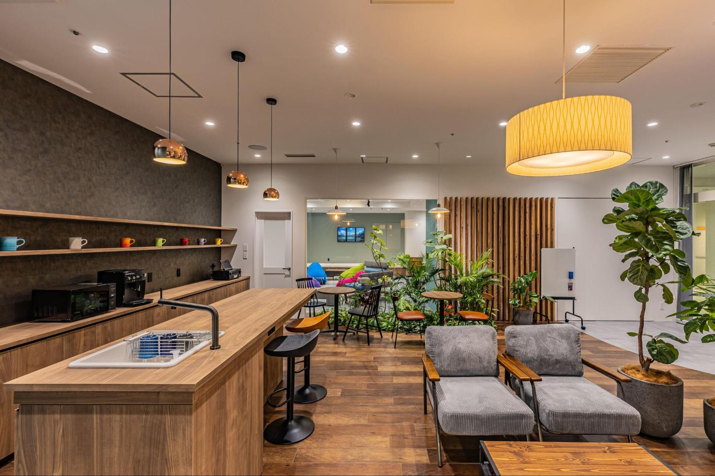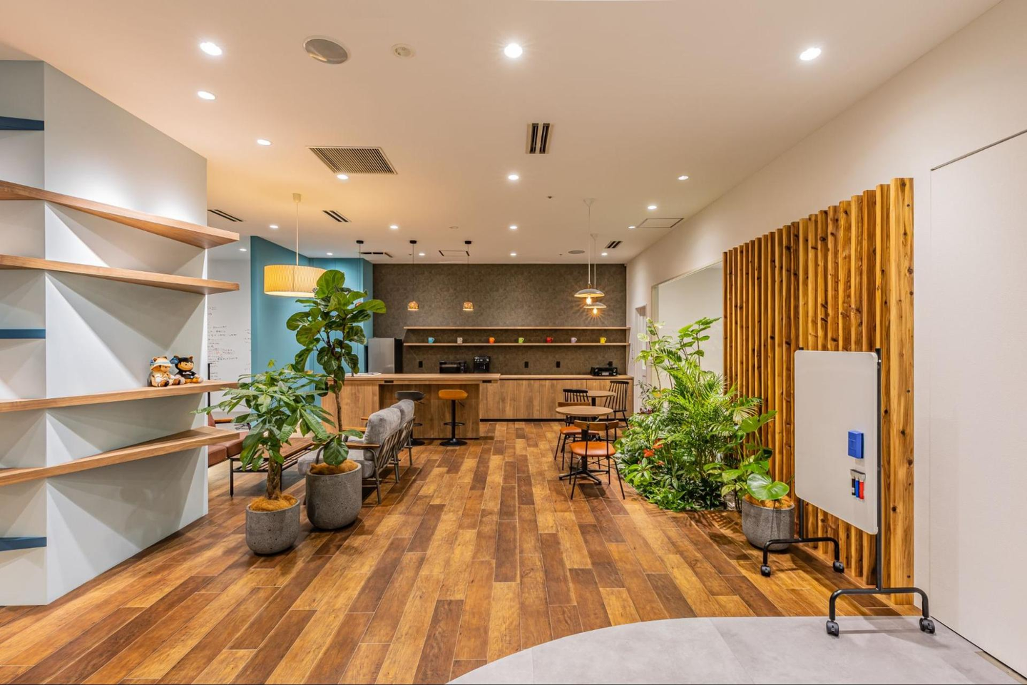 コンセプトは、メンバー同士が自由にコミュニケーションを取る事でお互いに力をつけることができるように。また、地元の大学生などの交流の場にしていきたいという想いが込められたオフィスなんです。