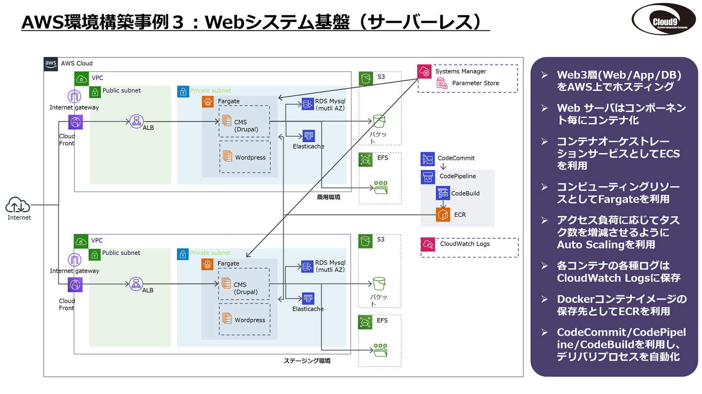 わたしたちCloud9の受託開発チームでは、Web開発を新規AWS上に構築して対応することはもちろんのこと、既存のオンプレミス環境からのAWSへの移行も対応しています。