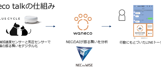 犬猫用 活動量計『プラスサイクル』が、NECと連携しペットとLINE上でトークができるサービス『waneco talk』を開始