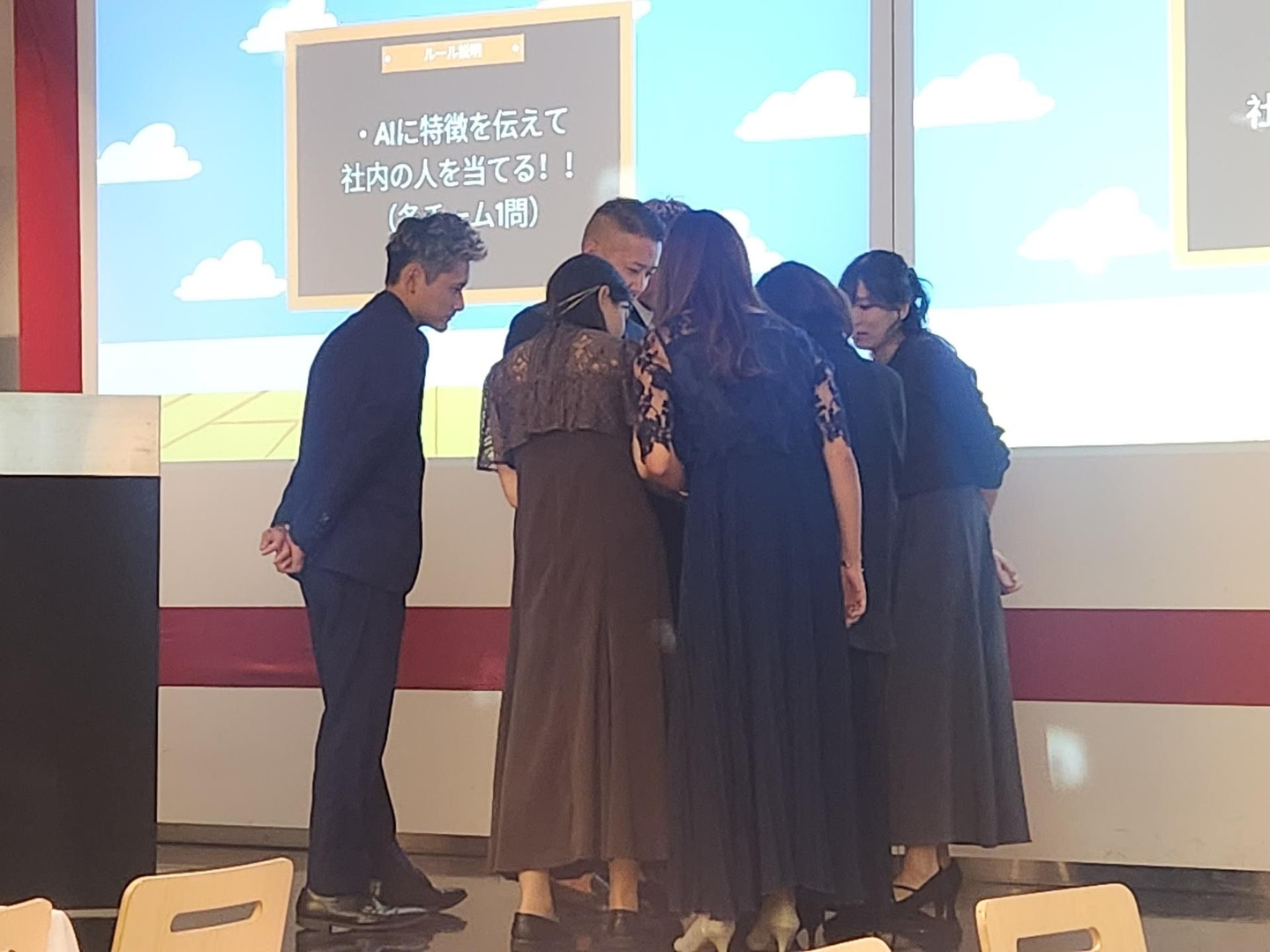 生成AIを使って社員の特徴を入れて出てきたイラストを誰か当てる「AI似顔絵当てゲーム」、日付を言わずに順番に並ぶ「誕生日並び替えゲーム」、各メンバーから提示される漢字一文字をヒントにした「激ムズ!?お題当てゲーム」など、頭とチームワークを駆使するゲームが続き、笑いの絶えない時間に。