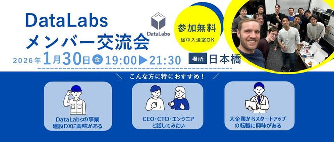 DataLabsメンバー交流会を開催しました!先日、弊社では初めての採用交流会を開催しました!「スタートアップで働くってどんな感じだろう」「業界やプロダクトについてもう少し詳しく知りたい」「どんなメンバーが働いているのか気になる」といった、さまざまな興味を持った方々が集まる場となりました。ご参加いただいた皆さんには、弊社メンバーと直接話すことで、働く環境や会社のリアルな魅力を肌で感じていただけたのではないかと思います。また、普段は得られない生の情報を通じて、弊社により親近感や興味を持っていただけたようです。交流会を通じて、「もっと話を聞いてみたい」「選考に進んでみようかと考えている」とい...