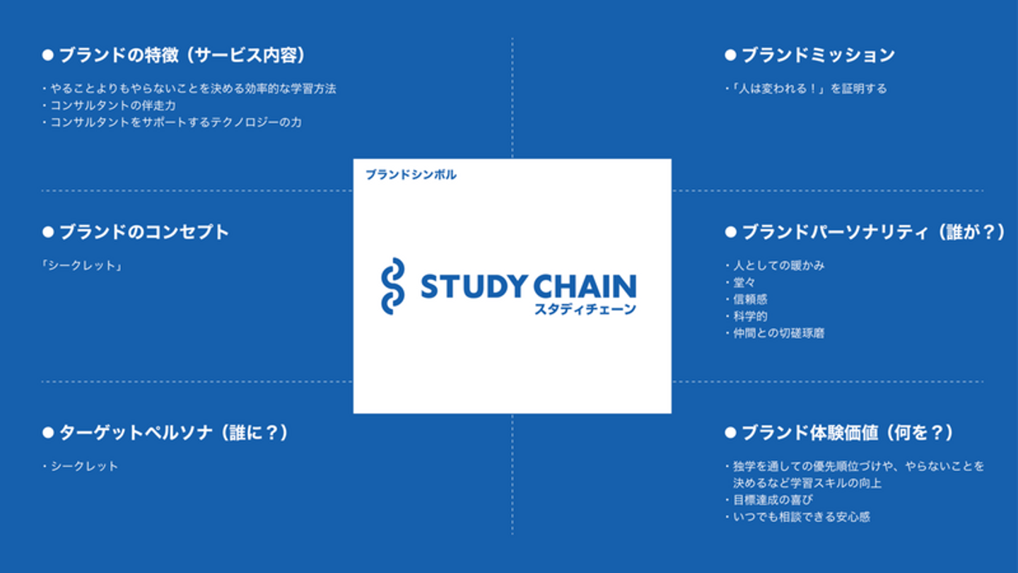 つまり、今あるスタディチェーンのリソースの全てをかけて、受験生・その保護者様にサービスの価値を提供し、お客様に愛されるスタディチェーンのブランドを構築していく。