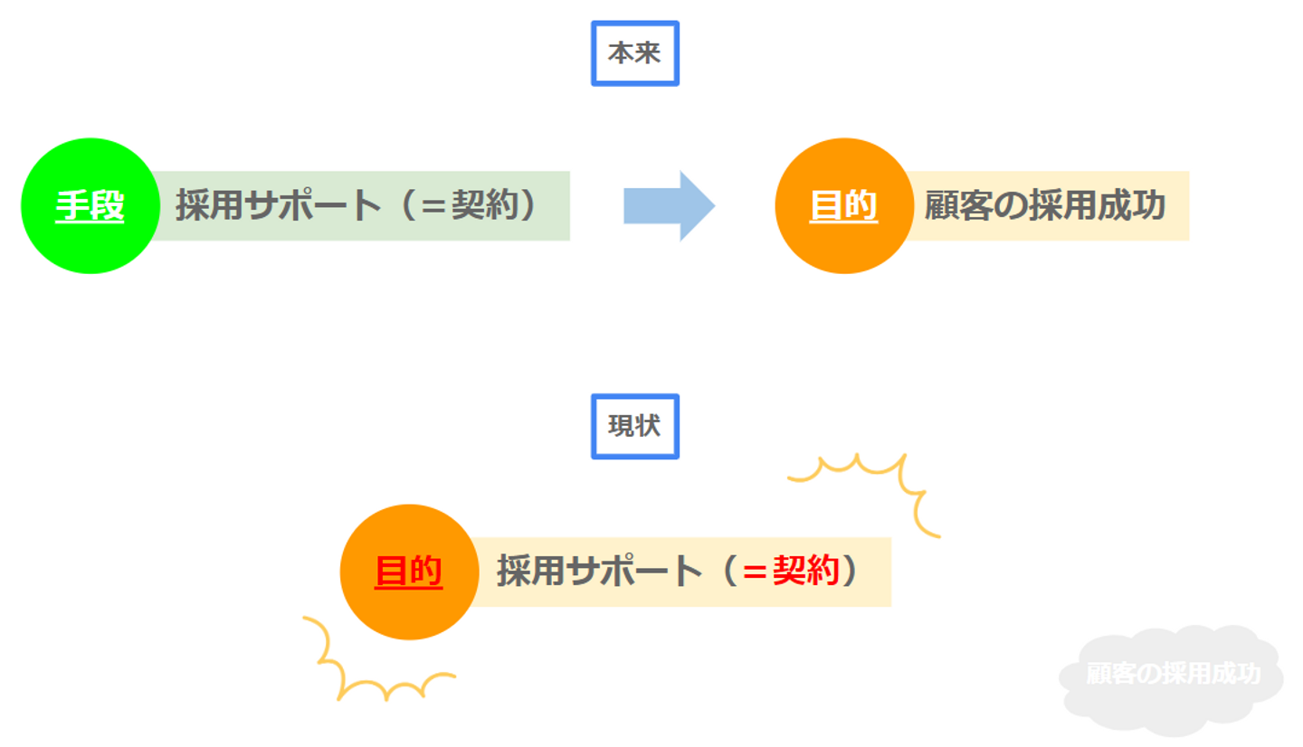 〈手段〉としての採用サポートが〈目的〉となっていました。