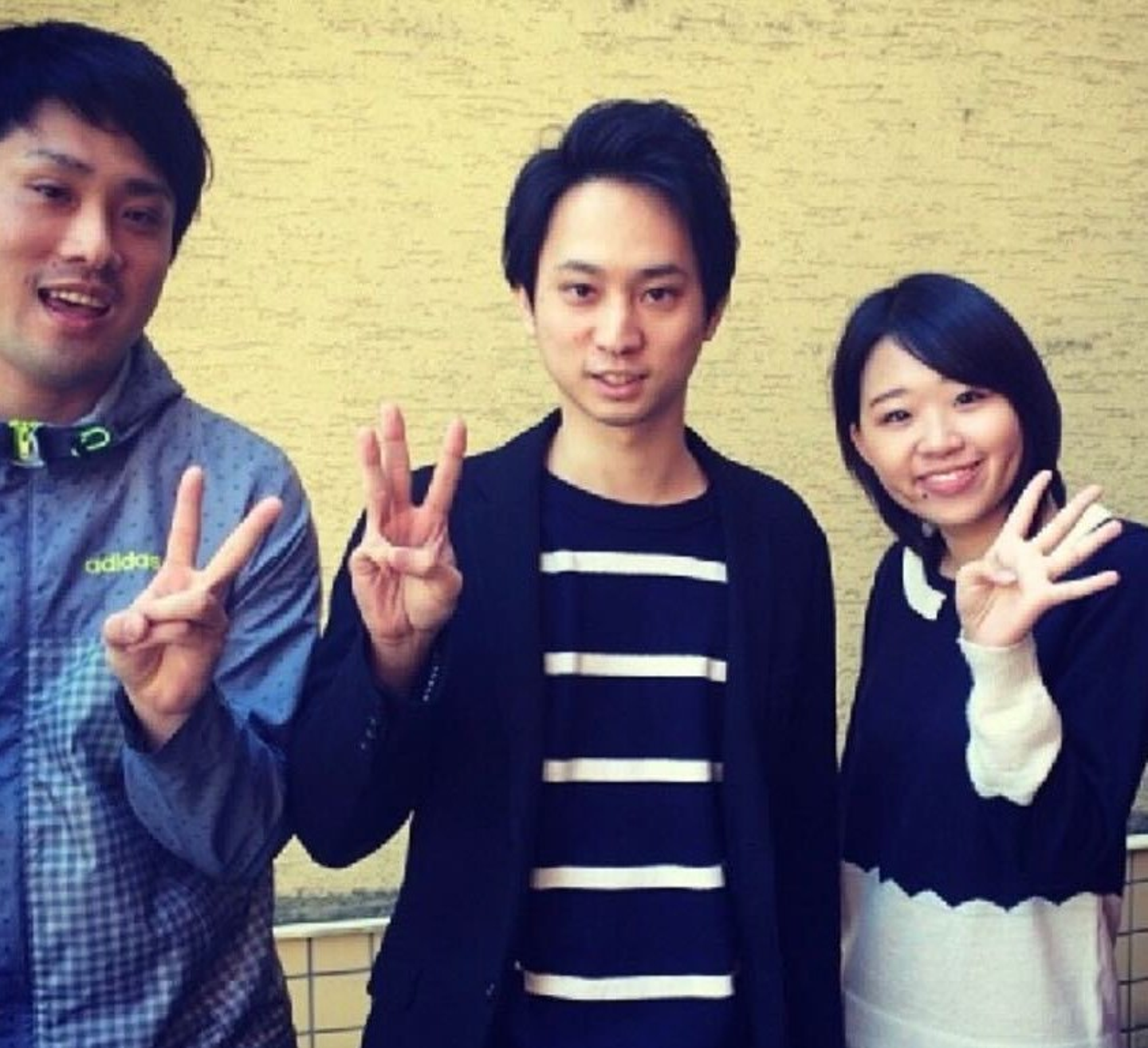↓8年前の学生団体の集会にて。左から荒井・岡部・赤田です。若っ。