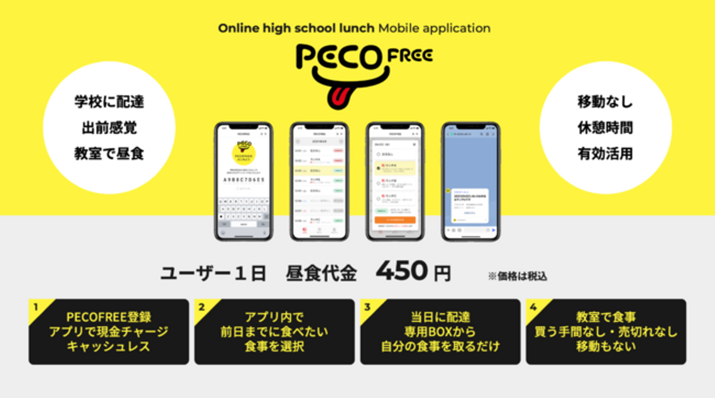 株式会社PECOFREE(本社:福岡県福岡市、代表取締役:川浪 達雄)は、学校で食べるお弁当をスマートフォンで予約注文できるサービス「PECOFREE(ペコフリー)」を10月11日から茨城県立竜ヶ崎第二高等学校(所在地:茨城県龍ケ崎市、校長:磯山 佳美)にてサービスを開始いたします。