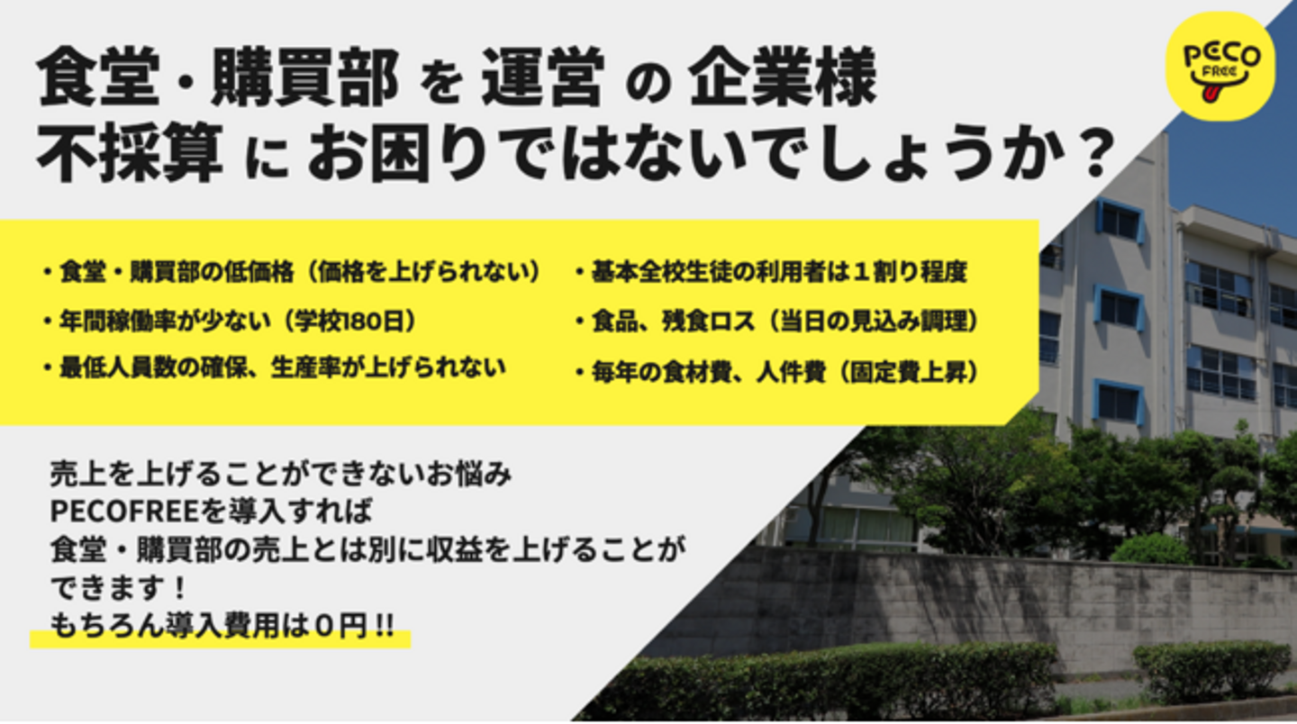 学校導入、食堂運営会社または食産業による導入に関するお問い合わせ:https://pecofree.jp/