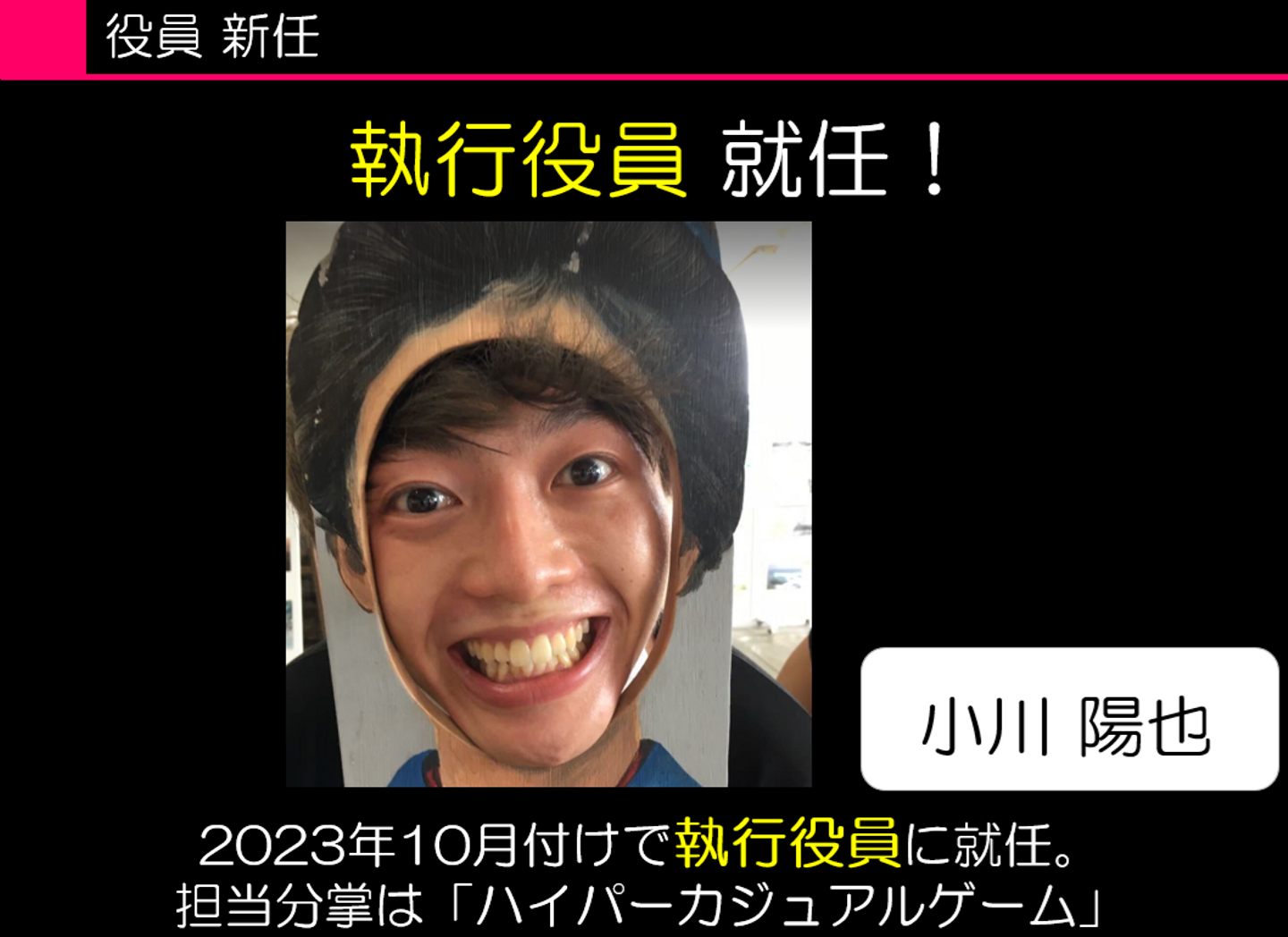 (※執行役員発表。サイバーエージェントのゲーム部門子会社で最年少役員に!)