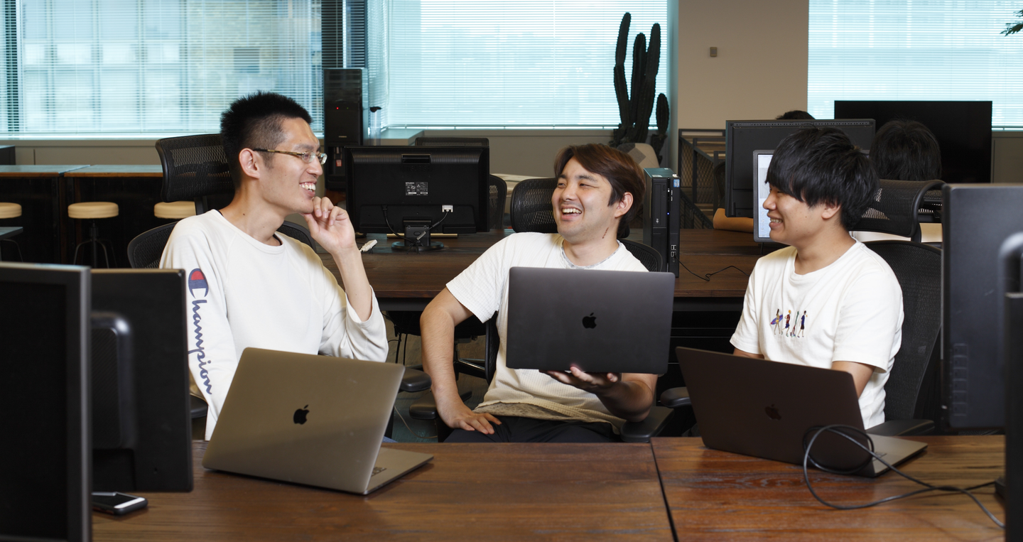 Mさん: 風通しの良いチームだと思いますね!!実装で困ったことがあっても、気軽に相談し合える環境ですし、新メンバーへのコードレビューなども積極的に行っています!!エンジニアチームでデスクも近いので、普段から和気あいあいと話しながら仕事していますね!!!(大声)