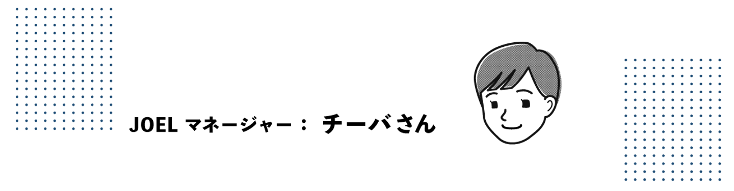 今回は、JOEL(ジョエル)のマネージャーとして日々奮闘されている"チーバ”さんにJOELについてお話を伺いました!