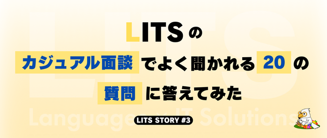 みなさんこんにちは、広報担当のNです!LITSに関心をもっていただきありがとうございます。本日のテーマは 「LITSに向いている人」 です。今回は、実際に活躍している社員の特徴やアンケートを基に、LITSに向いている人についてご紹介したいと思います。現在のLITSメンバーはどんな人が多い?LITSはまだまだ若い会社ですが、一人ひとりが主力として活躍できる場だと感じます。社会の課題に英語とITでこたえる「バイリンガルIT」という理念のもと、海外経験を持つメンバーや、自主的にアクションを起こせる方が多い印象です。(あくまでNの主観ですが…!)また、20〜30代が中心で、女性が全体の約8割を占...