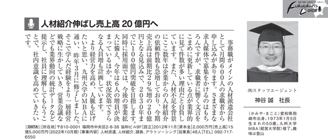 日本1の大手人材派遣会社にてトップ営業マン→スタッフエージェント 代表取締役社長