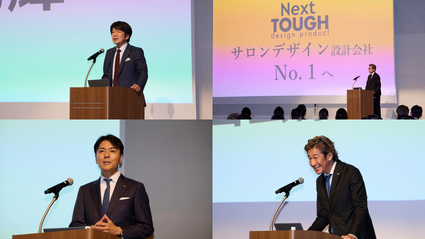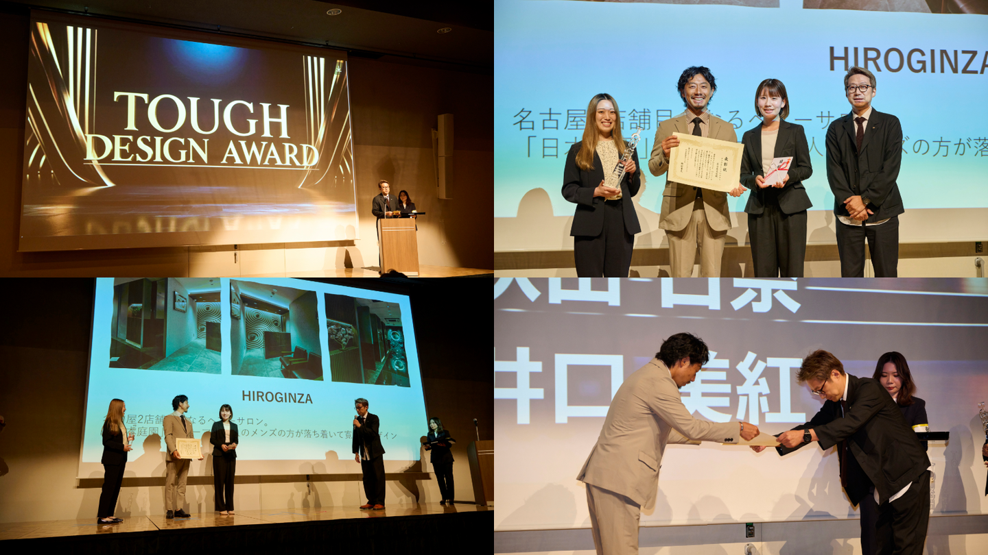 ▼内装デザインコンテスト『タフデザインアワード』では、決勝にノミネートされた9組の作品の中からビューティガレージグループ社員の事前投票を経て1位に選ばれたデザインの表彰式。