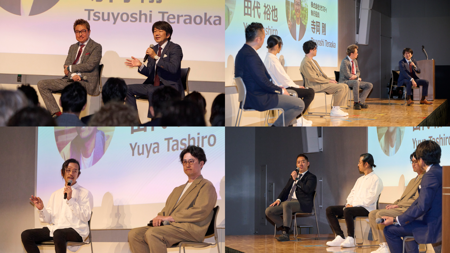 ▼会議後半は「株式会社スパガレージ」「株式会社カラログ」「HAIRCAMP株式会社」「株式会社リサスティー」計4社の役員に登壇いただき、各社のプレゼンテーションを実施した後にビューティガレージ代表取締役CEO兼COO 野村と各社役員とのトークセッションを行ないました。
