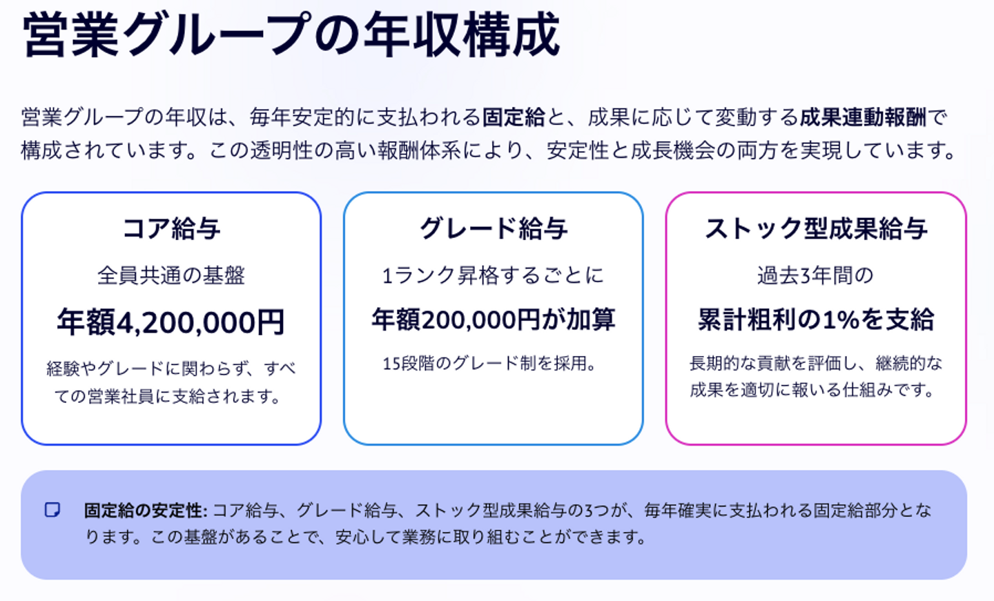 特にストック型成果給は特徴的で、「成果が積み上がる報酬」です。