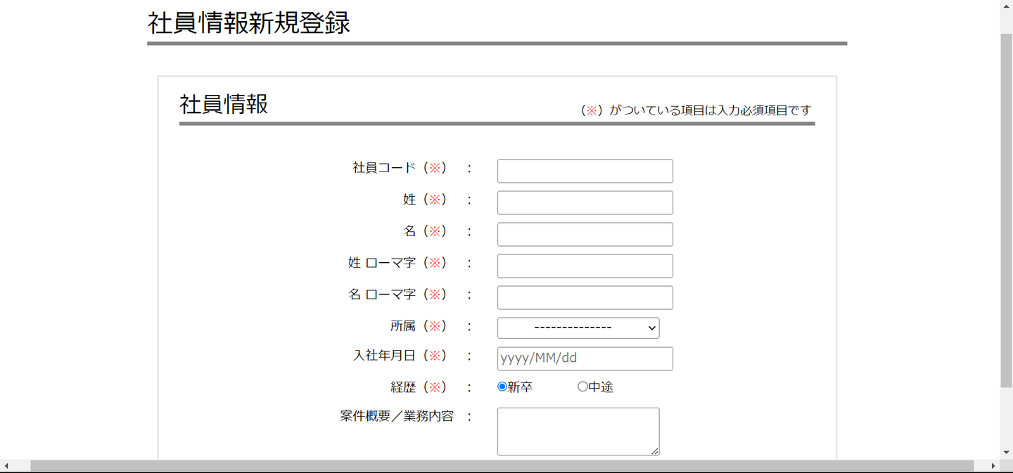 ■step4 データベースの内容を画面に表示、 社員情報の新規登録