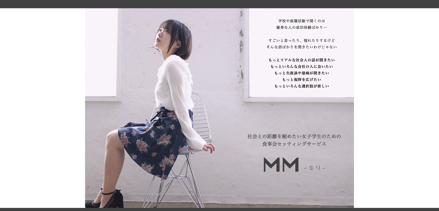 ▲ 社会との距離を縮めたい女子学生のための食事会セッティングサービスMM(ミリ)