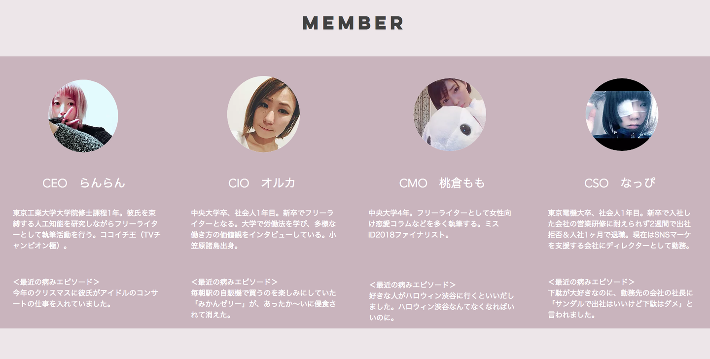 らんらん「全員、メンヘラです…(笑)メンバーはこんな感じです。」