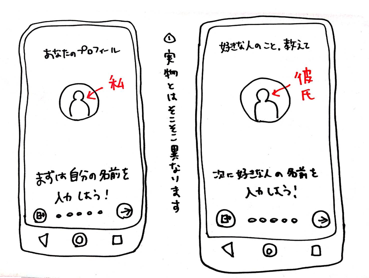 その目的は恐ろしく個人的なのですが、もしも私の彼氏に好意のあり、なおかつ私の存在を知らない女性がアプリをインストールしたら、「あ!彼女いるんだ…」と気づいてもらえる仕様になっています。