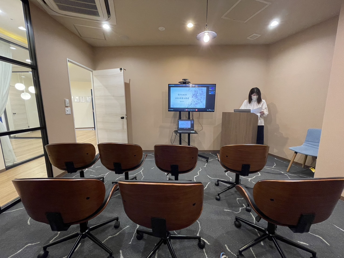 人事部の司会で、いよいよ入社式スタートです!