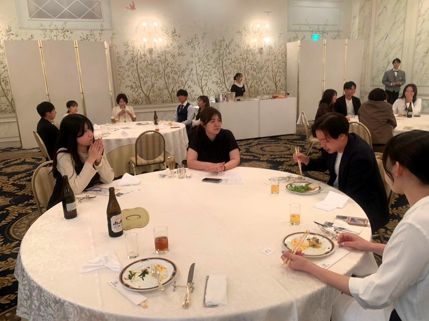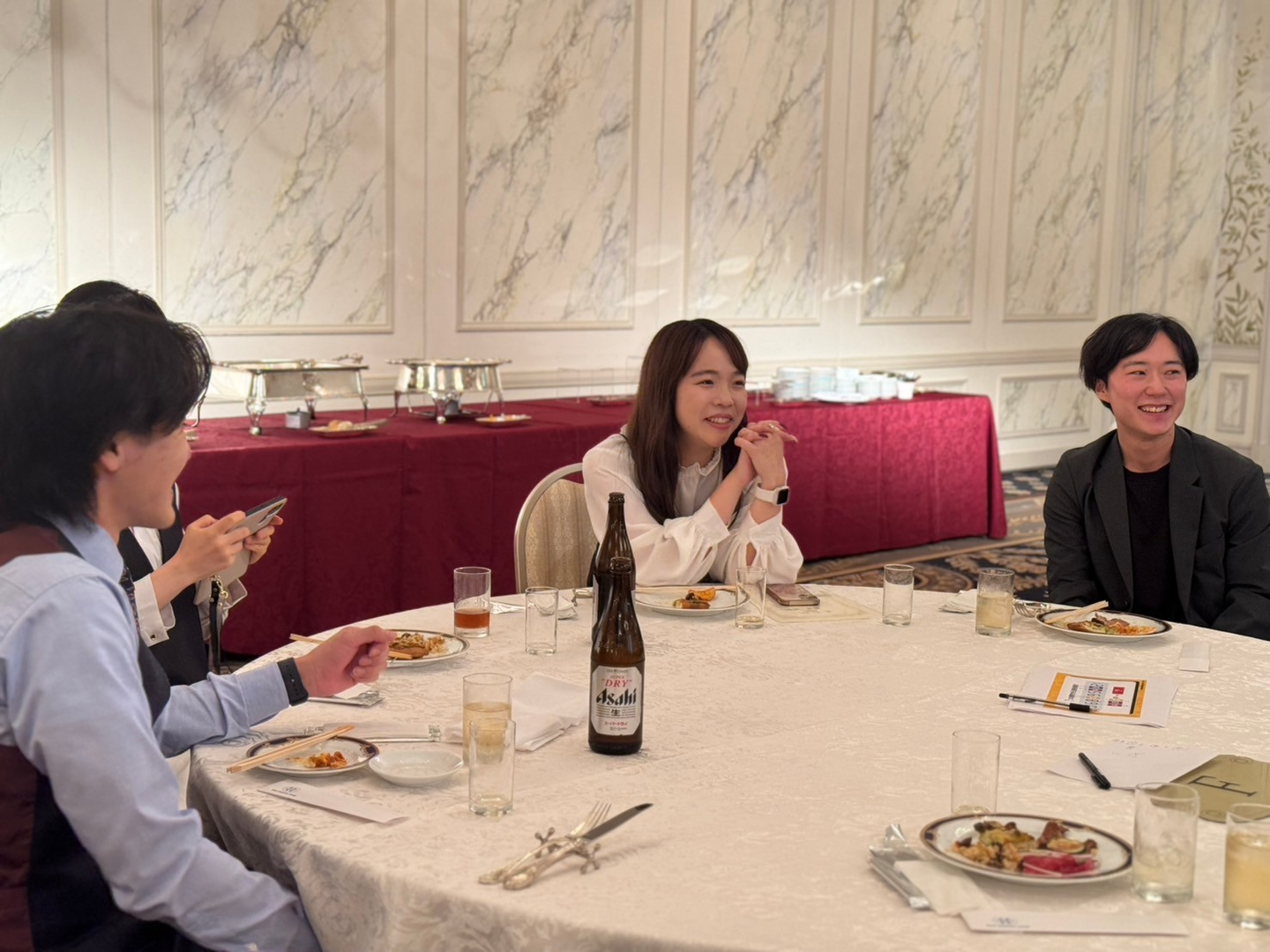 今年は着座形式ということで、ゆっくりとお食事も堪能できました🥘 初めてお会いする内定者のみなさんや、普段はあまりお話できないような別拠点や部署の方とも、垣根を越えて盛り上がっていました🤗