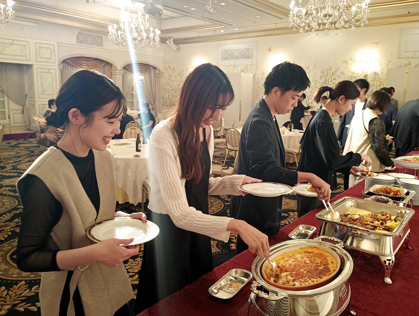 テーブルの皆で料理を取り分けたり、各々で好きに盛り付けたりと、様々なスタイルでビュッフェを楽しんでいました🤤🍽️