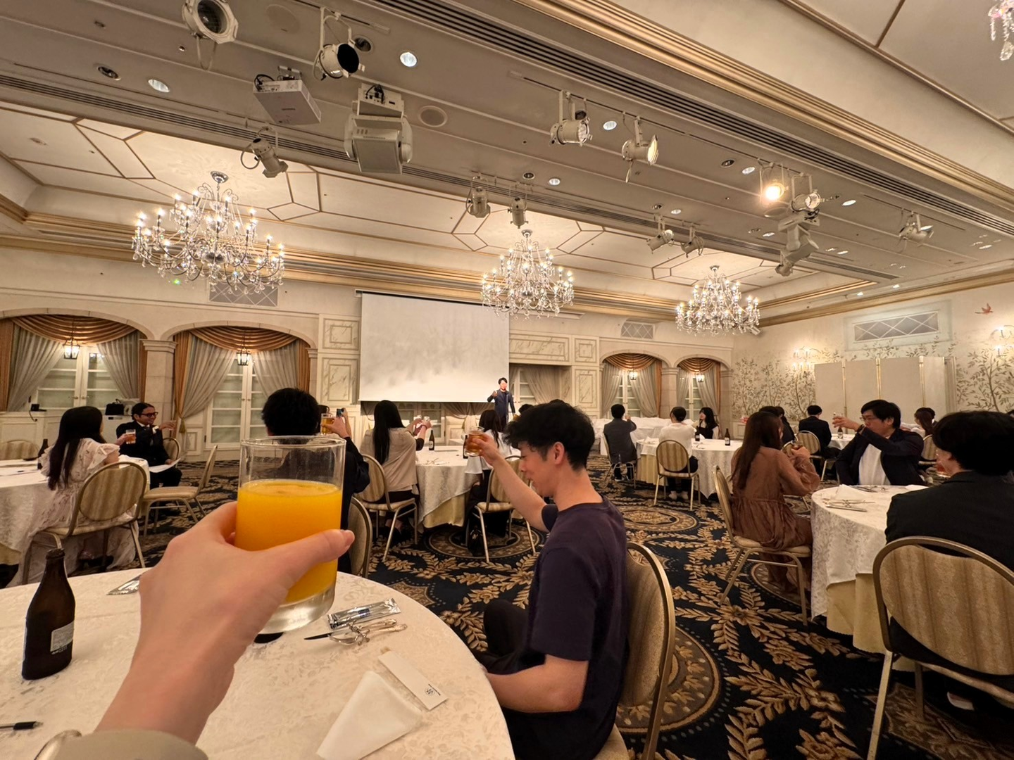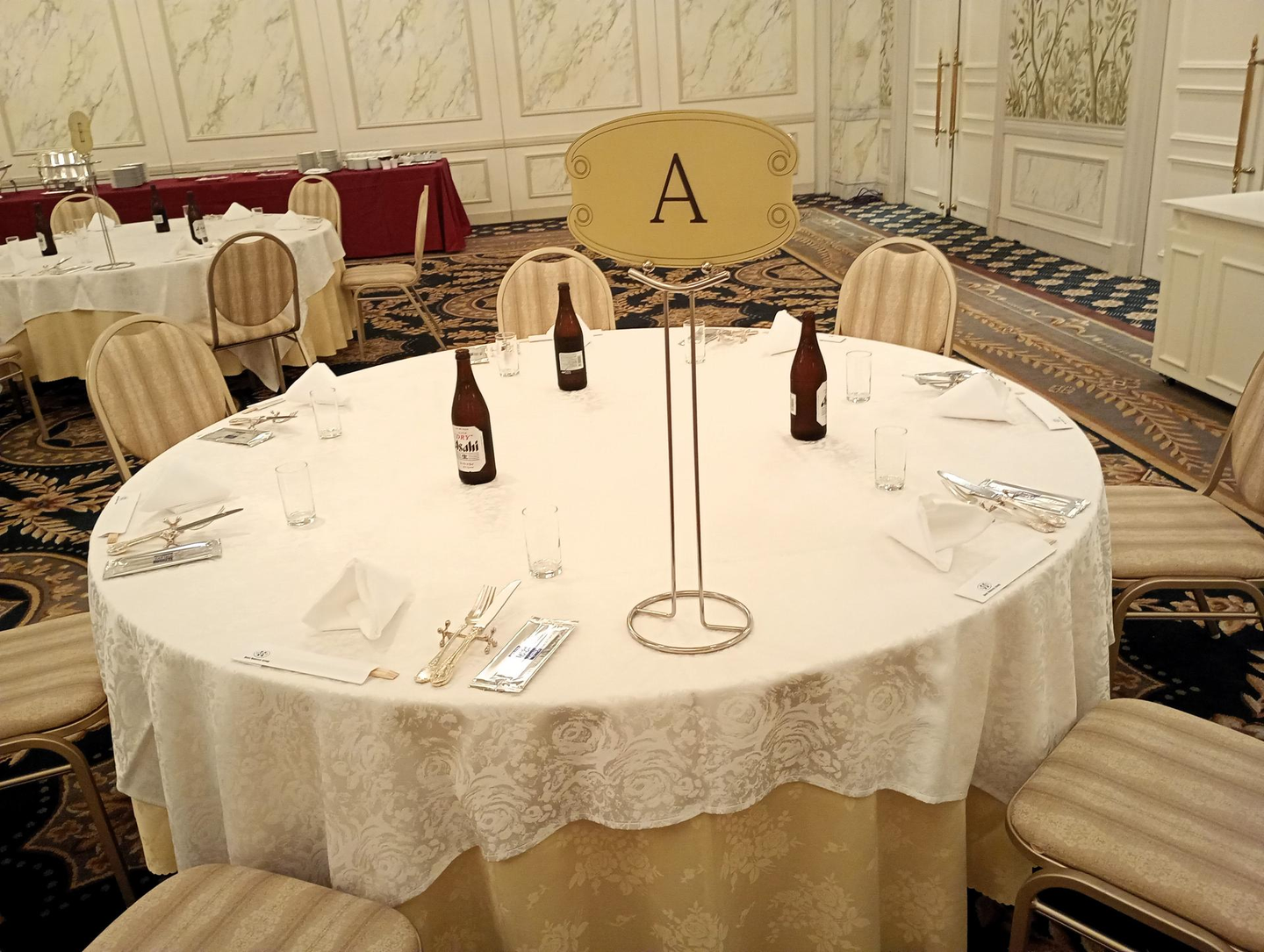 懇親会の会場『パルフィ』へ移動すると、上品ながらも豪華な雰囲気の空間に、テーブルの上にはビールが🍺(ビール好きな私はこれだけでテンションが上がってしまいます…!)