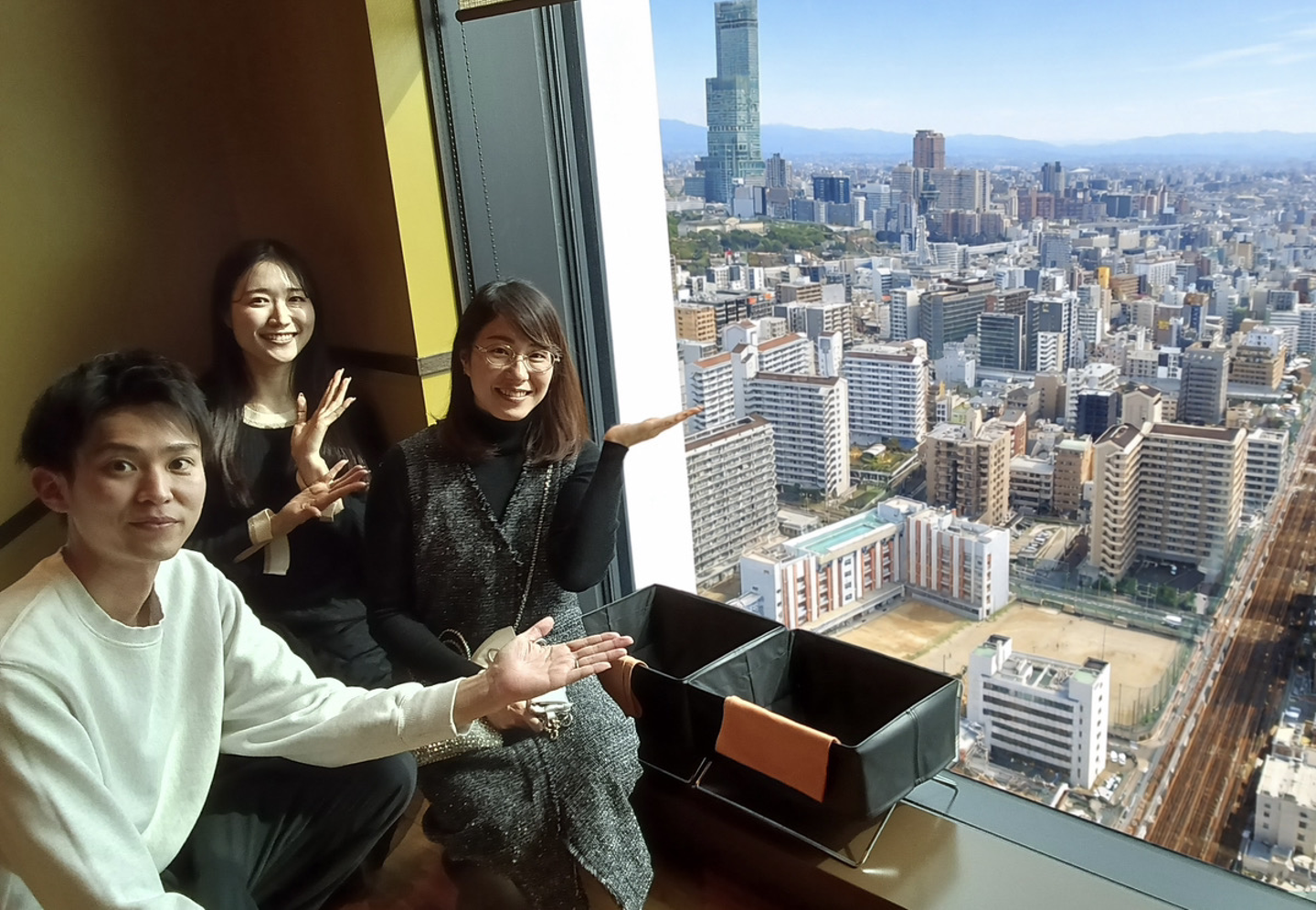 オフィスからみんなで10分ほど歩いて、ホテルに向かい、絶景を見ながら美味しいごはんをいただき、