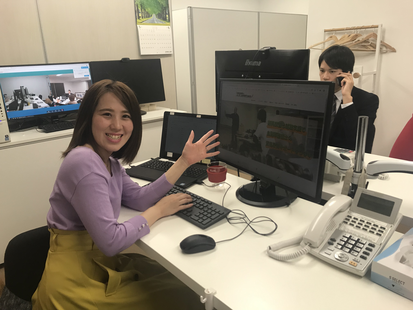 ちなみに後ろのモニターには、東京支社とLIVEで繋がっており、お話しする事もできます。