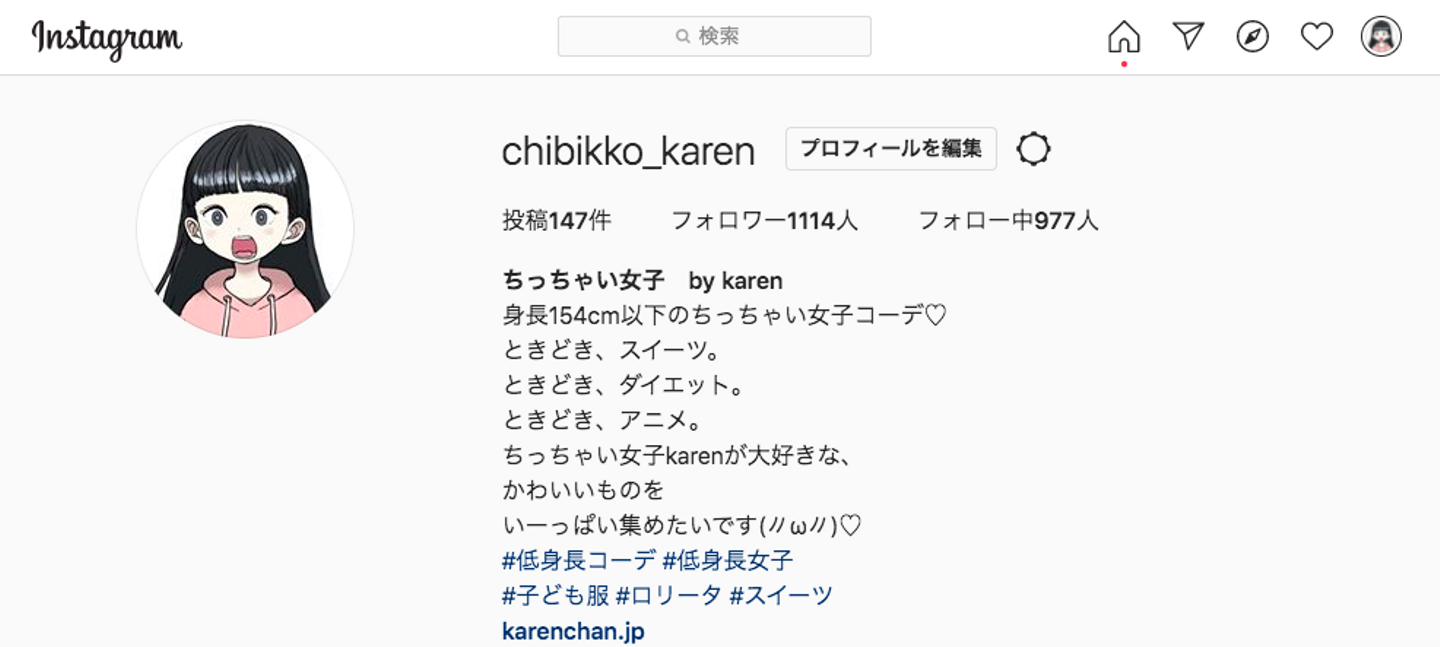 宮本さんのインスタグラムアカウント「chibikko_karen」